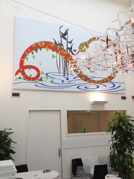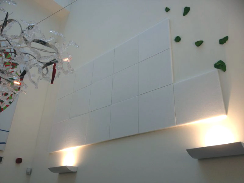 Bij huisartsenpraktijk Kadoelerbreek is de nagalmtijd verbeterd door het gebruik van een prachtige Isonic visual en akoestische tegels.