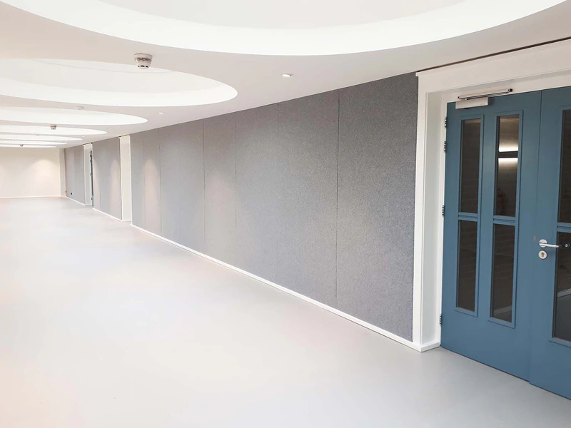 In Amsterdam Nieuw-West staat het imposante, monumentale Catharinacomplex uit 1953. In 2018 is door Hegeman Bouw een start gemaakt met de renovatie van dit complex, in september 2019 is de renovatie afgerond. Het Catharinacomplex is een school voor slechthorende en slechtziende kinderen. Deze bijzondere doelgroep vraagt om verschillende akoestische aanpassingen in het gebouw. De akoestisch adviseurs van Vilton Silent Building adviseerden Berger Barnett Architecten voor de klaslokalen Softsonic 23 mm wandpanelen in de kleur grijs te plaatsen. Voor de gymzaal werd ook gekozen voor Softsonic wandpanelen 23 mm, maar dan in de kleur lama. Deze panelen zijn op maat gemaakt in onze eigen fabriek en door onze vakmensen aangebracht.