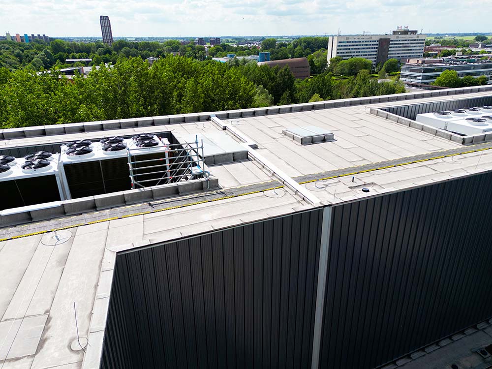 Één van de vragen was: “Hoe sluiten we het dakprofiel waterdicht aan op het gevelprofiel?”. Deze twee profielen moeten waterdicht zijn. Het was een uitdaging om dit zowel op tekening als in de uitvoering goed op elkaar aan te laten sluiten. Vilton werkte een detailtekening uit en zorgde ervoor dat het juist werd uitgevoerd. Als eindresultaat keurde de hoofdaannemer en opdrachtgever de detailtekening goed waardoor alle dakopstanden op deze wijze zijn uitgevoerd.