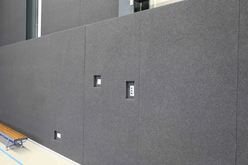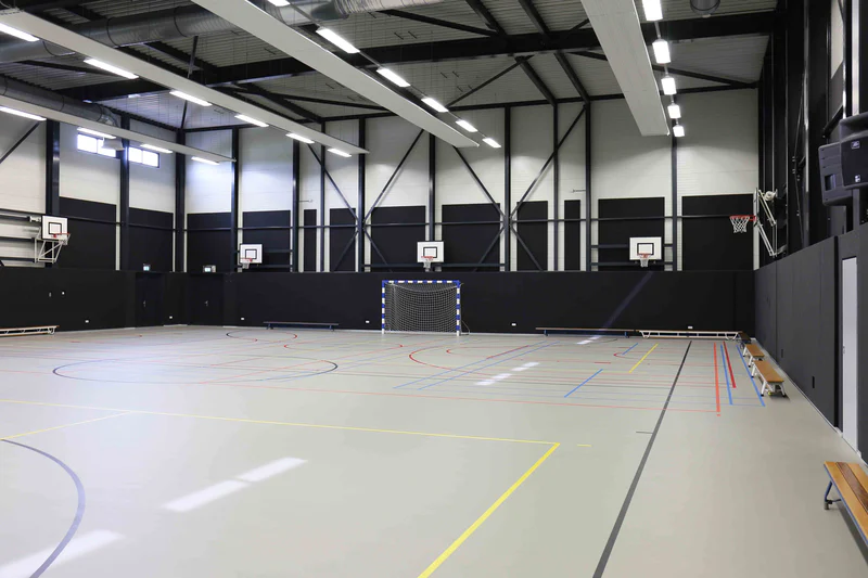 Scholengemeenschap Sophianum in het Limburgse Gulpen vroeg de akoestisch experts van Vilton Silent Building om een oplossing te vinden voor de galm in de sporthal. Ons advies: Softsonic 43 mm. De akoestische wandpanelen (in de kleur antraciet, de kleur van de huidige voorzetwand) zijn in onze eigen fabriek gemaakt en onze vakmensen hebben de panelen (in totaal 355 m²!) op de wanden bevestigd, zowel op de voorzetwand als de laag erboven. Doordat Softsonic vormvast is, licht in gewicht en zeer goede geluidsabsorberende eigenschappen heeft voldoet de gymzaal nu aan de normen van de KVLO.