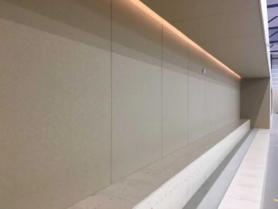 Sporthal Het Spectrum in Hoofddorp werd in 2019 gerenoveerd, met een nieuwe entree, horeca, vergaderruimte, kantoor en kleedkamers. Vilton Silent Building adviseerde Softsonic (23 mm, 140 m²) aan te brengen op de wanden in de gymzaal en Isonic wool (22 mm, 23m² in de kleur beige) wandpanelen te gebruiken in het kantoor van de gymdocent. Beide materialen hebben zeer geluidsabsorberende eigenschappen met als verschil dat Softsonic is gemaakt van polyesterwol, Isonic Wool van duurzaam wolvilt. De panelen zijn op maat gemaakt in onze eigen fabriek in Lelystad en aangebracht door onze vakmensen in de gymzaal en kantoorruimte. De akoestiek in de sporthal en het kantoor zijn nu prima voor elkaar.