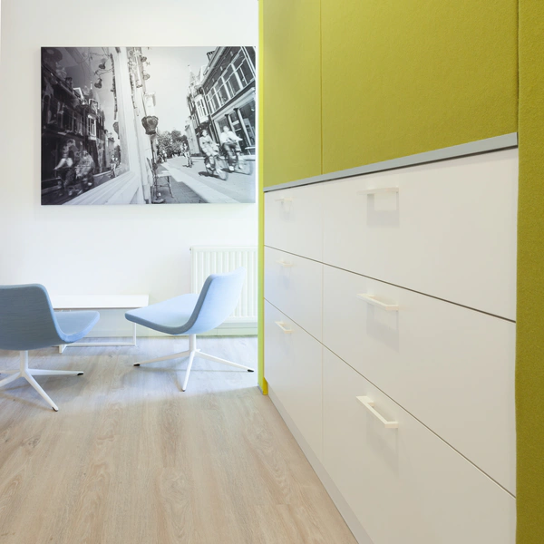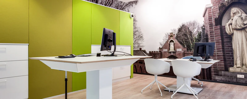 In nauw overleg met de afdeling vormgeving van de gemeente Tilburg is een Isonic Wool ontwerp samengesteld voor de kastenwand van de stadswinkel Berkel-Enschot. De grote kastenwand dient zowel een esthetisch als een akoestische functie te hebben. Door het toepassen van akoestisch vilt met een dikte van circa 32 mm wordt een hoog absorberend vermogen behaald. De akoestische viltelementen zijn voorzien van een versterkt wolvilt en vooraf op maat gemaakt voor de kast. Doordat de wanden geluiddempend zijn uitgevoerd, kan een akoestisch (verlaagd) plafond achterwege blijven. Aanvullend is er op de wand een Isonic visual akoestisch wandpaneel aangebracht. Alle akoestische voorzieningen zijn binnen een dag gemonteerd door onze vakmensen.