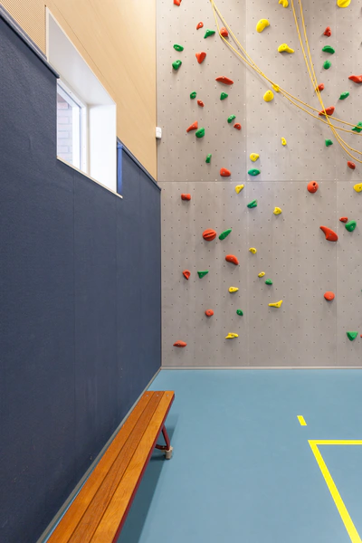 In de nieuwbouw van vakcollege De Hef in Rotterdam is naast onderwijs ook ruimte voor wonen en zorg. In de dubbele sportzaal van de school is de akoestische prestatie en veiligheid van groot belang. Alle wanden zijn daarom voorzien van Viltsonic Sport akoestische wandpanelen. De panelen zijn op maat gemaakt in onze eigen fabriek en door onze vakmensen op locatie gemonteerd.