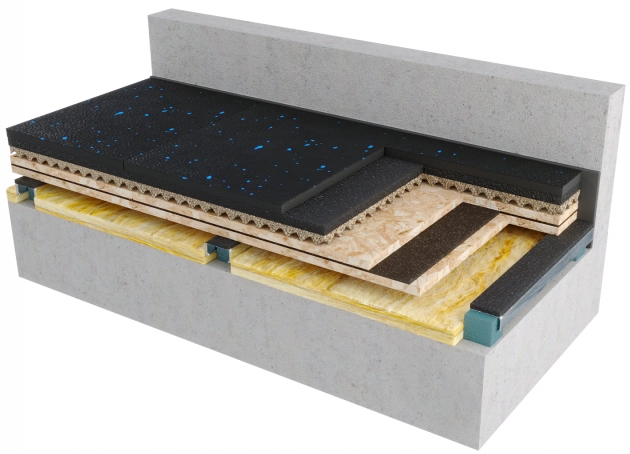 ViltonĀ® AKSPO krachtvloer HP systeem is een hoogwaardig presteerend, zwevend vloersysteem dat prestatiegericht is ontworpen om trillingen te beheersen, laagfrequent contactgeluid te minimaliseren en de overdracht van hoorbaar structuurgeluid te beperken. ViltonĀ® AKSPO krachtvloer HP is compatibel met de meeste conventionele vloerafwerkingen, zodat de keuze van de definitieve vloer onafhankelijk van de akoestische oplossing kan worden gemaakt. Het ViltonĀ® Stravigym HP systeem is met geĆÆsoleerde rails (standaard hoogte 56 mm) of dBoosterĀ®-rails (standaard hoogte 60 mm) leverbaar.