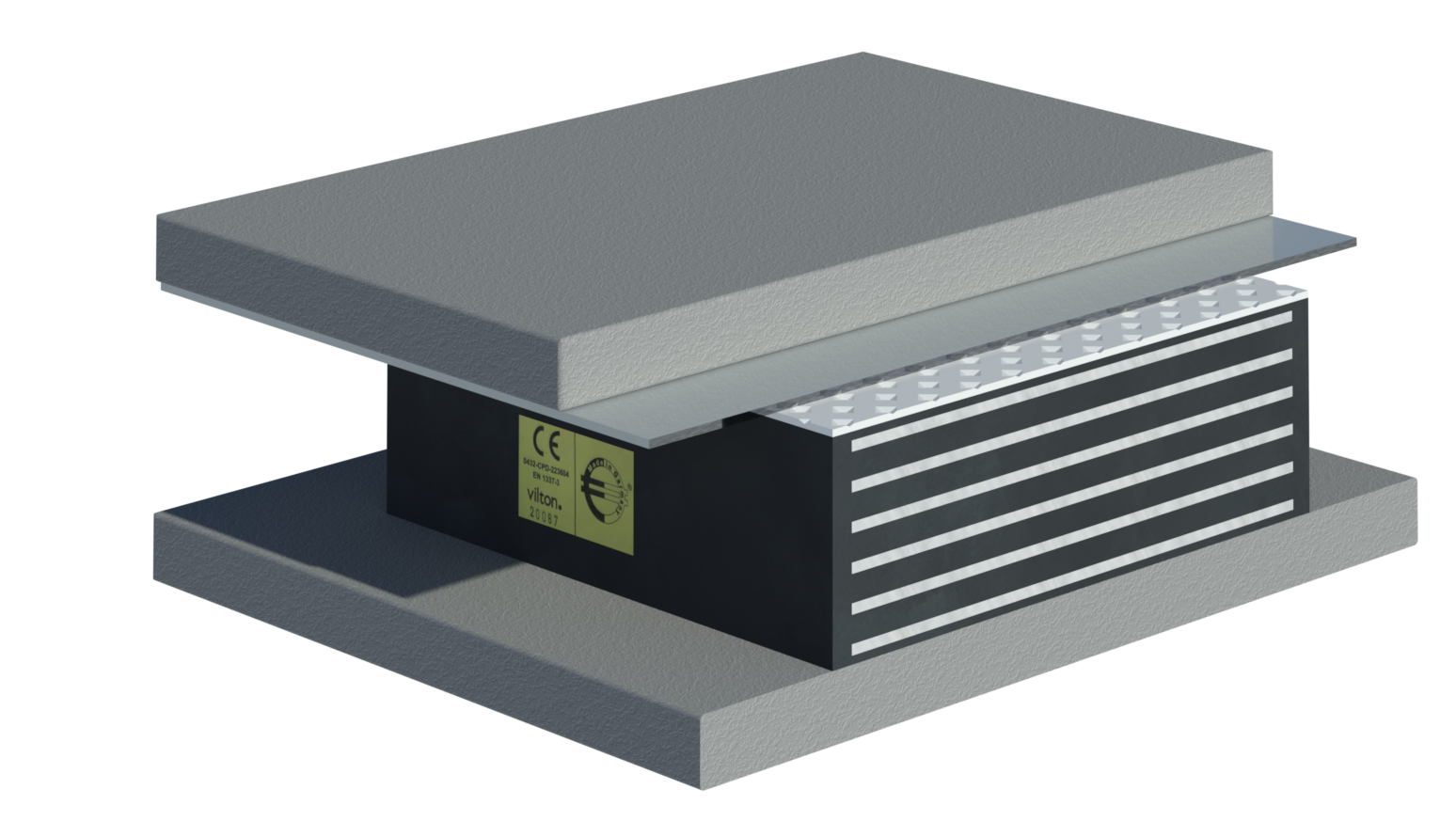De Vilton staalgewapende oplegging type D wordt toegepast als oplegging daar waar grote belastingen (verticaal), vervormingen en hoekverdraaiingen opgenomen moeten worden. Oplegging type D wordt veelvuldig toegepast in bruggen en viaducten, maar kan ook prima in de utiliteitsbouw worden toegepast. De oplegging wordt berekend conform EN 1337 en wordt geleverd met een CE prestatieverklaring. Type D is opgebouwd als een type B met aan één zijde een gevulkaniseerd Teflon buiten laag. De Teflon laag dient als glijlaag waarover een rvs staalplaat kan glijden. Ter voorkoming van indringend vuil dient de Teflon glijlaag bij voorkeur naar boven gericht te zijn. Dit oplegblok kan voorzien worden van een verankeringsconstructie, wanneer het oplegblok in de x- of de y-richting gefixeerd moet worden. Zie voor meer informatie hierover Vilton verankeringsconstructies.